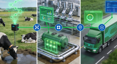 在 “双碳” 目标与全球碳关税压力下,横跨一二三产业的乳企正面临碳足迹管控的严峻挑战。传统模式下,一杯牛奶从牧场到餐桌的碳足迹常高达 1.7kg CO₂e 以上,且各环节数据割裂、核算误差超 20%。而通过构建 “牧场 — 工厂 — 冷链” 全链路数字线程,叠加区块链的可信追溯能力,乳企已实现碳足迹的精准管控与深度优化,部分标杆企业甚至将单位产品碳足迹降至 114g CO₂e,为食品行业绿色转型提供了可复制的技术范式。